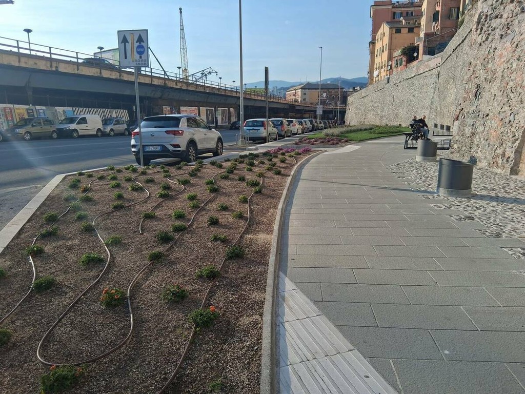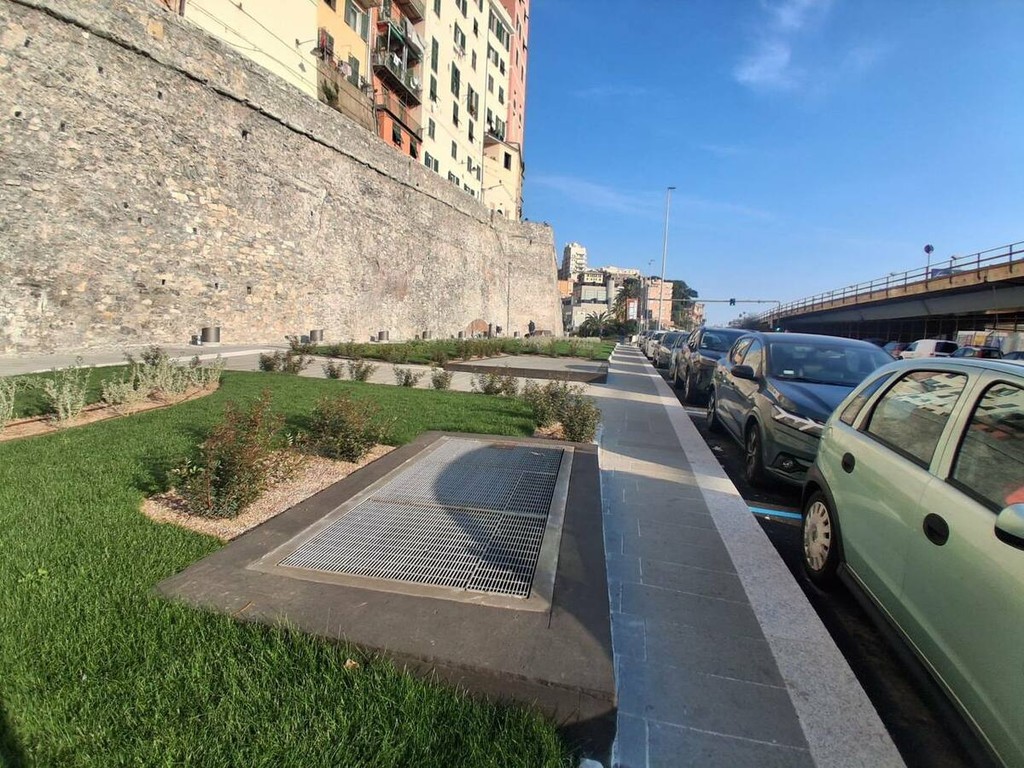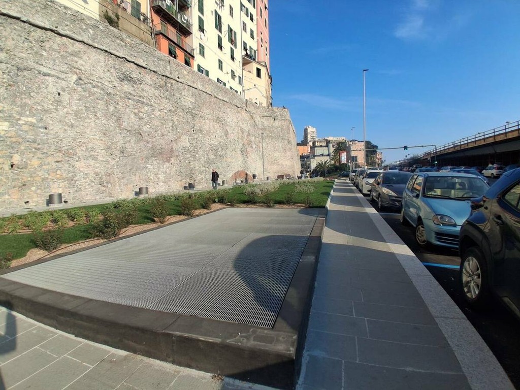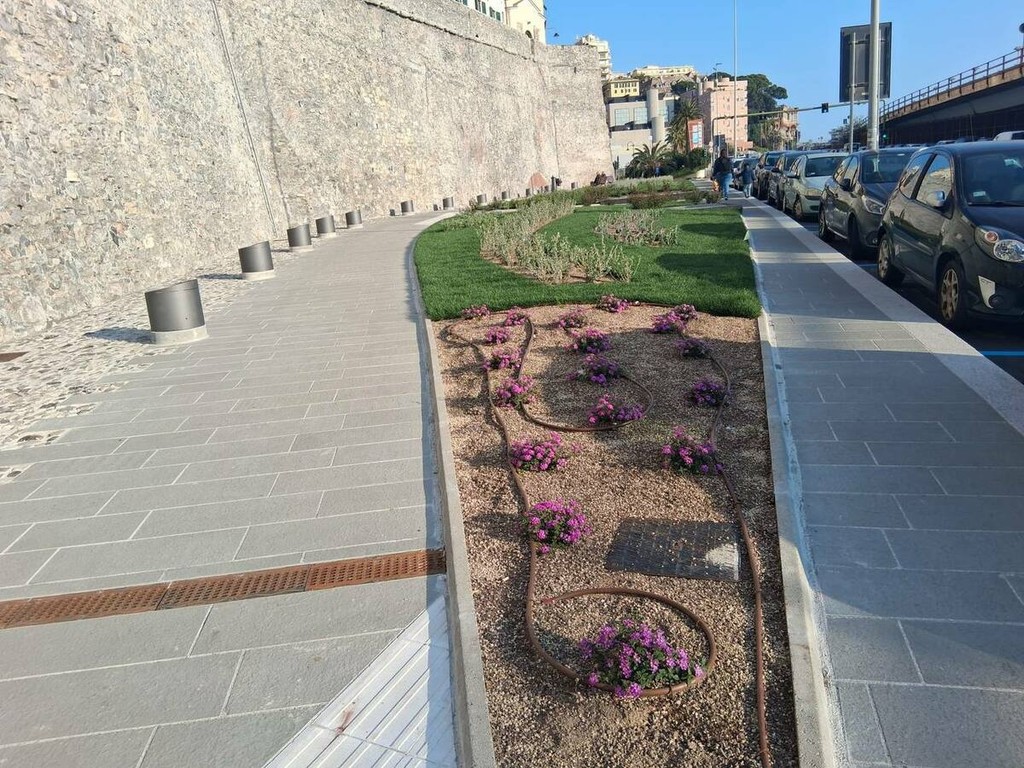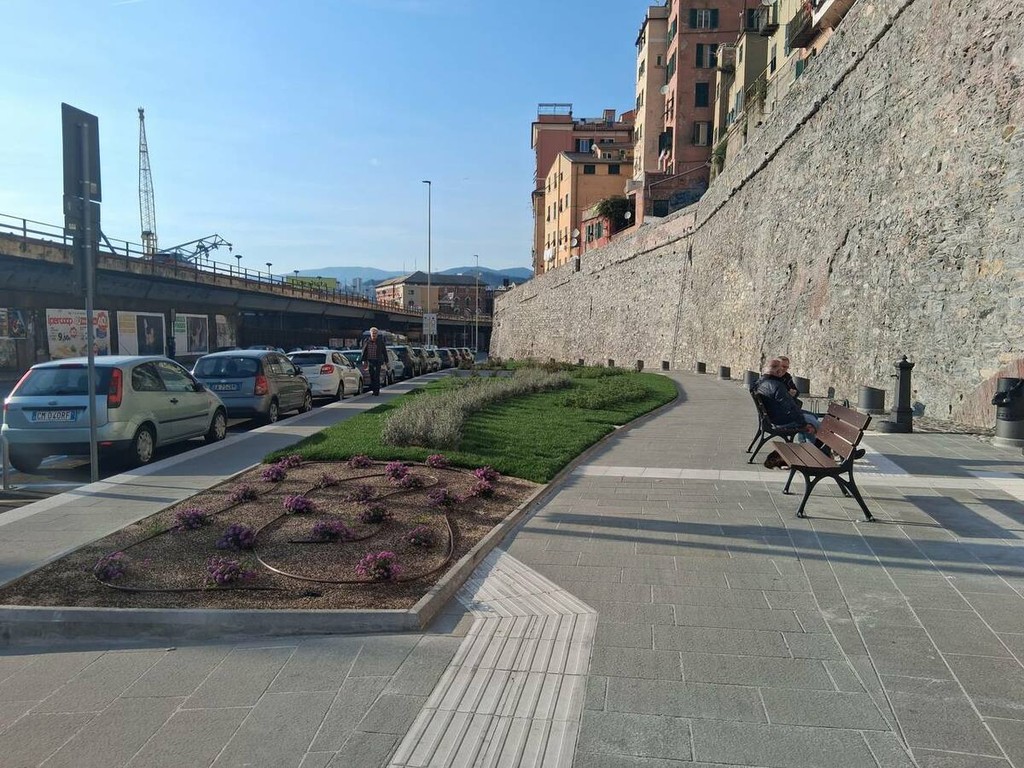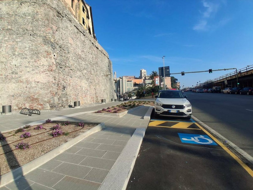 Con la rimozione del cantiere si conclude il cantiere di riqualificazione delle Mura della Marina, uno dei progetti finanziati con fondi PNRR che ha riguardato il consolidamento e il restauro dello storico percorso un tempo lambito dal mare e oggi passage che da piazza Sarzano declina verso il porto regalando uno degli scorci più suggestivi del centro storico.