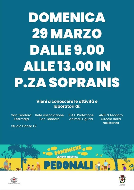 L'iniziativa coinvolge tutti i municipi, compreso il Centro Ovest, e ha già visto eventi simili in via Giovannetti e via Daste, a Sampierdarena. Quella di domenica rappresenta una novità assoluta per la zona: "Questo sarà il primo evento a San Teodoro", dichiara Poggi, aggiungendo che "l'idea di Piazza Sopranis è nata principalmente da una mia proposta. Mi sono occupato dell'organizzazione in toto, supportato dal punto di vista operativo dal Municipio per quanto riguarda le ordinanze e gli aspetti tecnici".