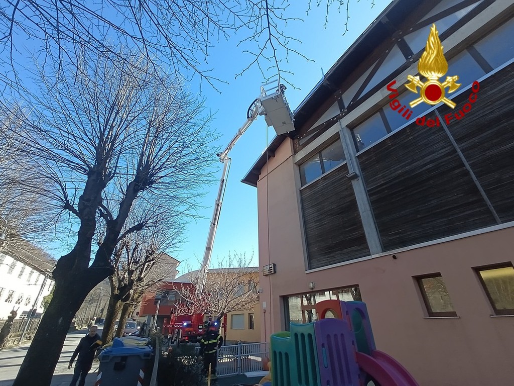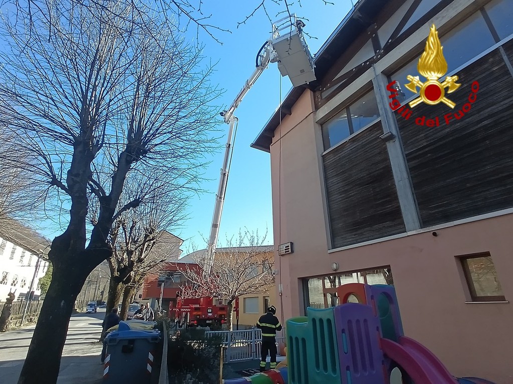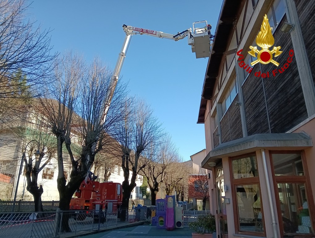 Tra le operazioni effettuate, la rimozione di alcune parti pericolanti del frontalino di una scuola in via Caduti della Libertà, a Rossiglione. Gli elementi, danneggiati dalle raffiche, incombevano sul passaggio sottostante, rappresentando un rischio per pedoni e utenti della strada.