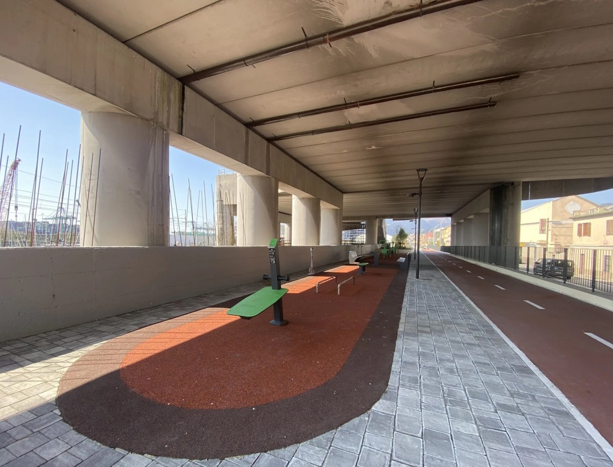 È realtà, e ha aperto nei giorni scorsi, la nuova pista ciclopedonale di Pra’, nella zona più a Levante, che viene definita Longarello: collega la rotatoria Pontile con l’incrocio con via Ungaretti, passando sotto al viadotto della Ferrovia, dove si crea una zona al coperto su cui è stata concepita un’area per il fitness.