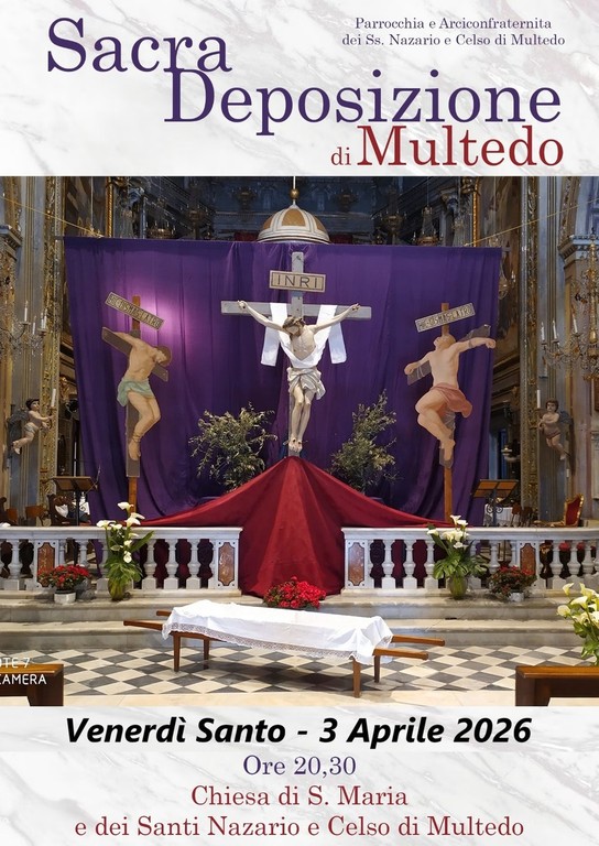 A Multedo, da ben 410 anni, tutti i Venerdì Santo, si tiene un evento più unico che raro in tutta Liguria e probabilmente in tutta Italia. Una celebrazione che mescola religione, senso di comunità, sacra rappresentazione popolare, orgoglio di paese, amicizia, fede, fedeltà, identità personale e d’insieme. Un momento dell’anno bellissimo e altamente suggestivo, per quanto coincida con la pagina più drammatica e dolorosa delle Sacre Scritture: quando Gesù muore in croce e viene poi deposto nel sepolcro.