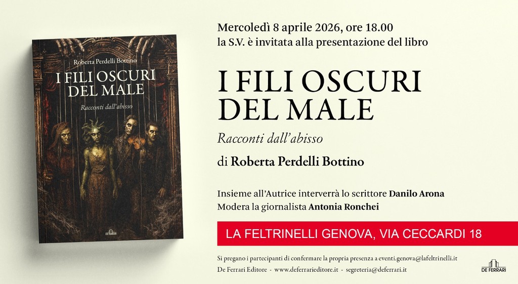 Domani, mercoledì 8 aprile, il libro “I fili oscuri del Male – Racconti dall’abisso” sarà presentato al pubblico a La Feltrinelli di via Ceccardi. L’appuntamento è fissato per le ore 18 e rappresenta la prima occasione per incontrare l’autrice Roberta Perdelli Bottino e approfondire i temi della raccolta.