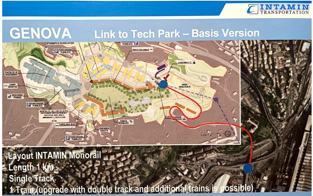 La proposta per Genova si sdoppia in due interventi strategici. Il primo riguarda il collegamento tra aeroporto ed Erzelli: circa un chilometro di tracciato per unire lo scalo, la nuova stazione ferroviaria e il polo tecnologico. Il costo stimato è di 30-31 milioni di euro. In questo caso, la capacità prevista è di circa 4.000 passeggeri all’ora per direzione, con una velocità massima che può raggiungere gli 80 km/h. De Simone critica le alternative come la funivia o il “tappeto mobile”, ritenute lente, poco efficienti per un servizio di massa e potenzialmente critiche sul piano della sicurezza.