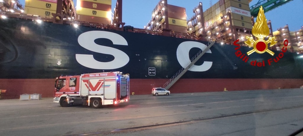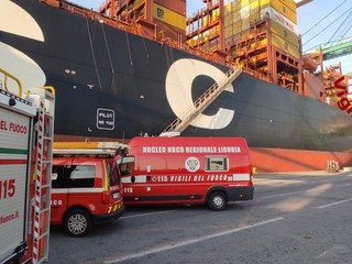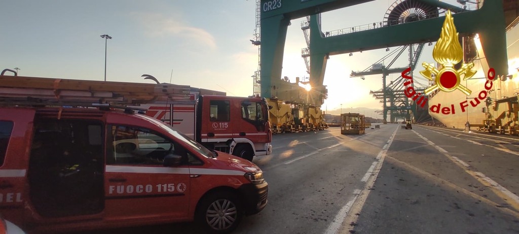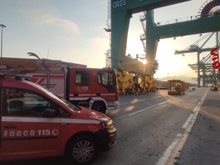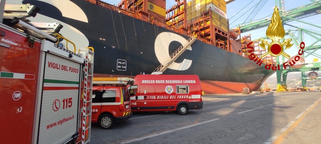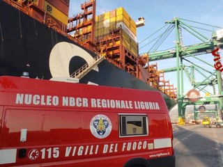 Massima allerta al termina container PSA nel porto di Pra’ dove questa mattina è scattato l’allarme per la fuoriuscita di una sostanza potenzialmente pericolosa da un contassero caricato su una nave cargo.