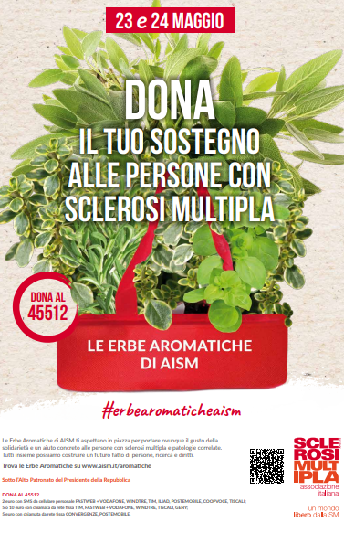 Torna nelle piazze italiane l’appuntamento con “Le Erbe Aromatiche”, l’iniziativa promossa da Associazione Italiana Sclerosi Multipla in programma il 23 e 24 maggio, con l’obiettivo di sostenere concretamente le persone affette da sclerosi multipla e patologie correlate.