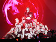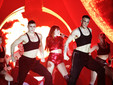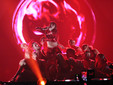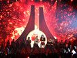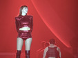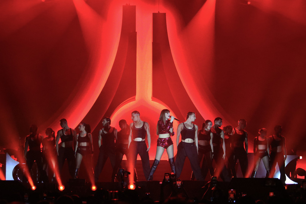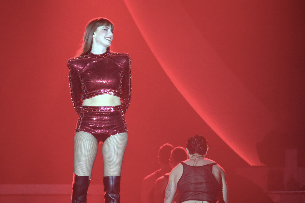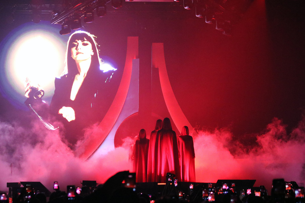 Il materiale su cui costruisce la serata è un gioco di stili e stilemi, di synth anni Ottanta che si evolvono in giochi e rimandi contemporanei. Tutto è in equilibrio tra nostalgia e futuro. Se il tema è il fuoco, anche il palco lo racconta: così quel fil rouge si materializza davanti agli occhi tra fiamme e scintille.
