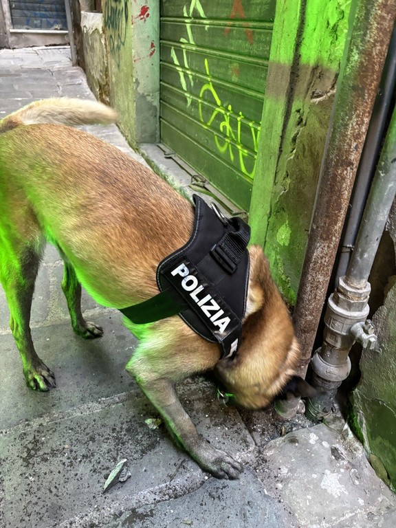 Il servizio è iniziato con il setaccio dei vicoli, dove il fiuto dei cani antidroga è stato determinante. Il cane Leone ha individuato circa 30 grammi di hashish nascosti all'interno di un tubo in vico degli Orti Bianchi, mentre poco dopo il collega a quattro zampe Constantin ha scovato altri 10 grammi di marijuana celati in una cabina elettrica in vico della Tortuga. La sostanza è stata sequestrata a carico di ignoti.