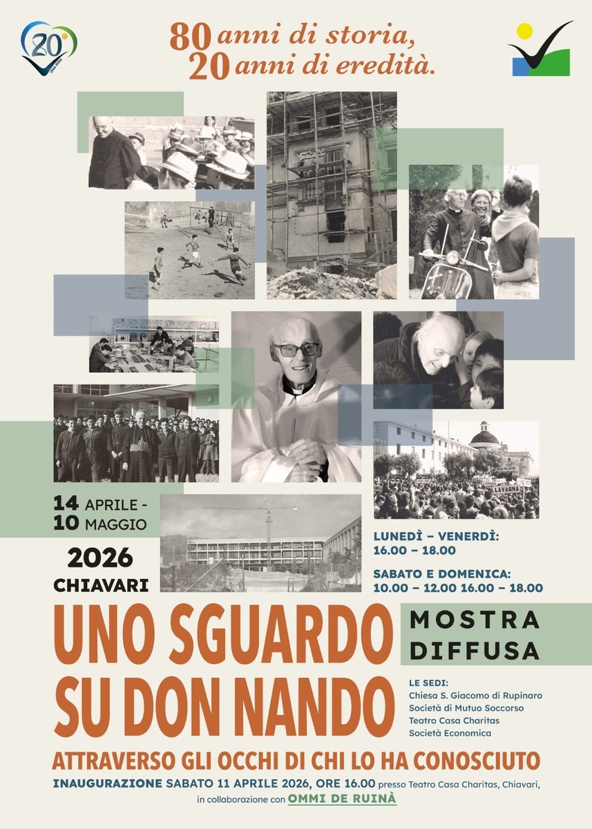 A Chiavari prende vita un percorso che è insieme memoria, emozione e futuro. Dal 14 aprile al 10 maggio 2026, la città ospita “Uno sguardo su Don Nando”, una mostra diffusa, a cura del Villaggio del Ragazzo e dedicata al suo fondatore, Don Nando Negri, a vent’anni dalla sua scomparsa e a ottant’anni dalla nascita della sua Opera.
