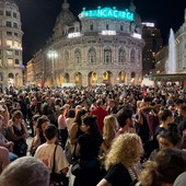 Migliaia di persone si sono riunite in piazza De Ferrari portando bandiere della Palestina e candele. All’iniziativa ha aderito anche il PD genovese